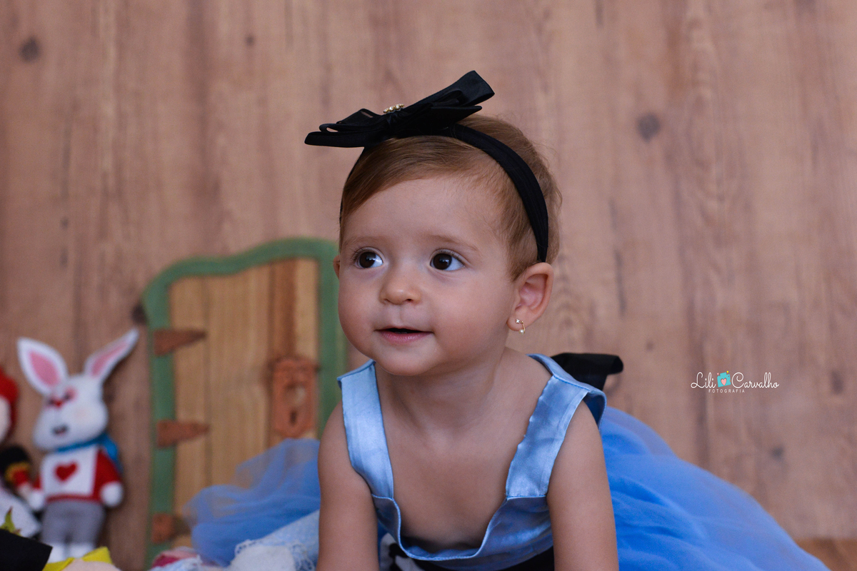 Fotografia de acompanhamento infantil realizada no estudio em Maringá tema alice