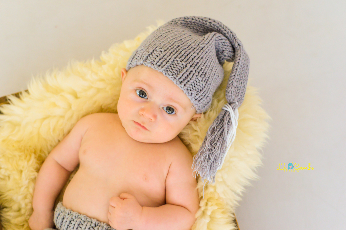 Ensaio fotografico de bebê de 3 meses, realizado no estúdio em Maringá