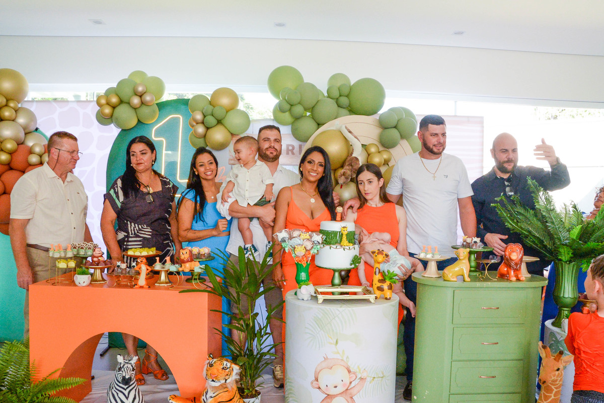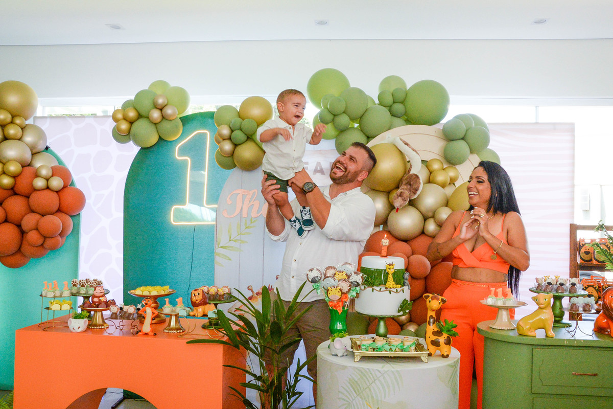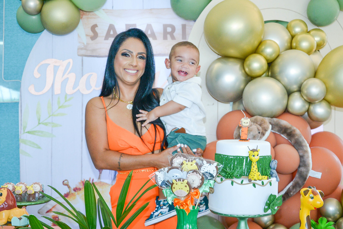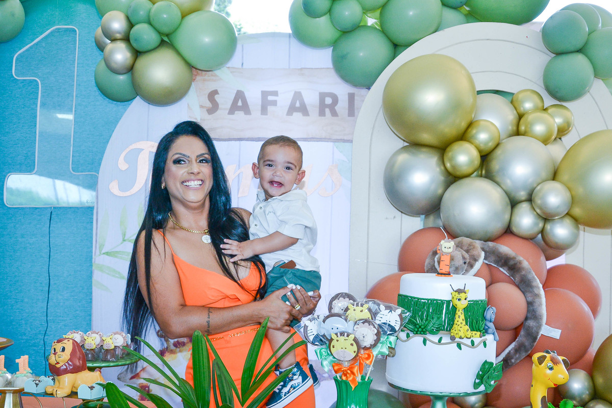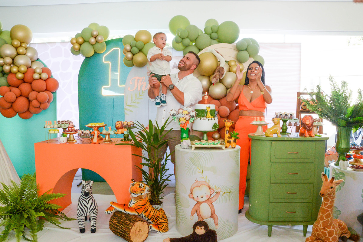 fotografia de aniversario de um ano de menino decoração safari