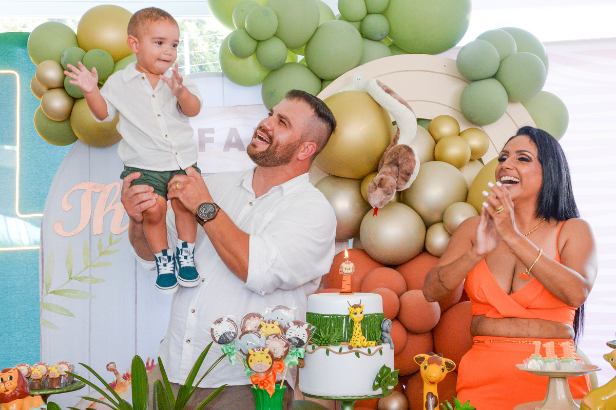 fotografia de aniversario de um ano de menino casal e filho
