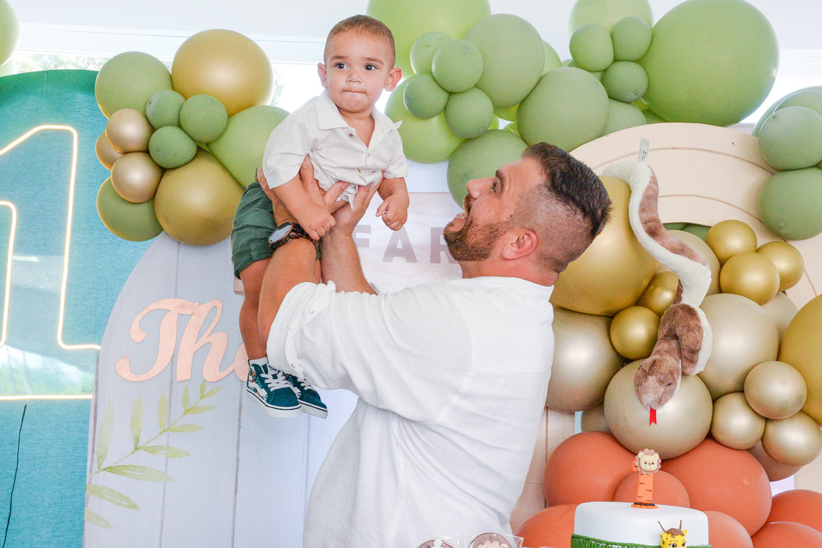 fotografia de aniversario de um ano de menino pai com filho