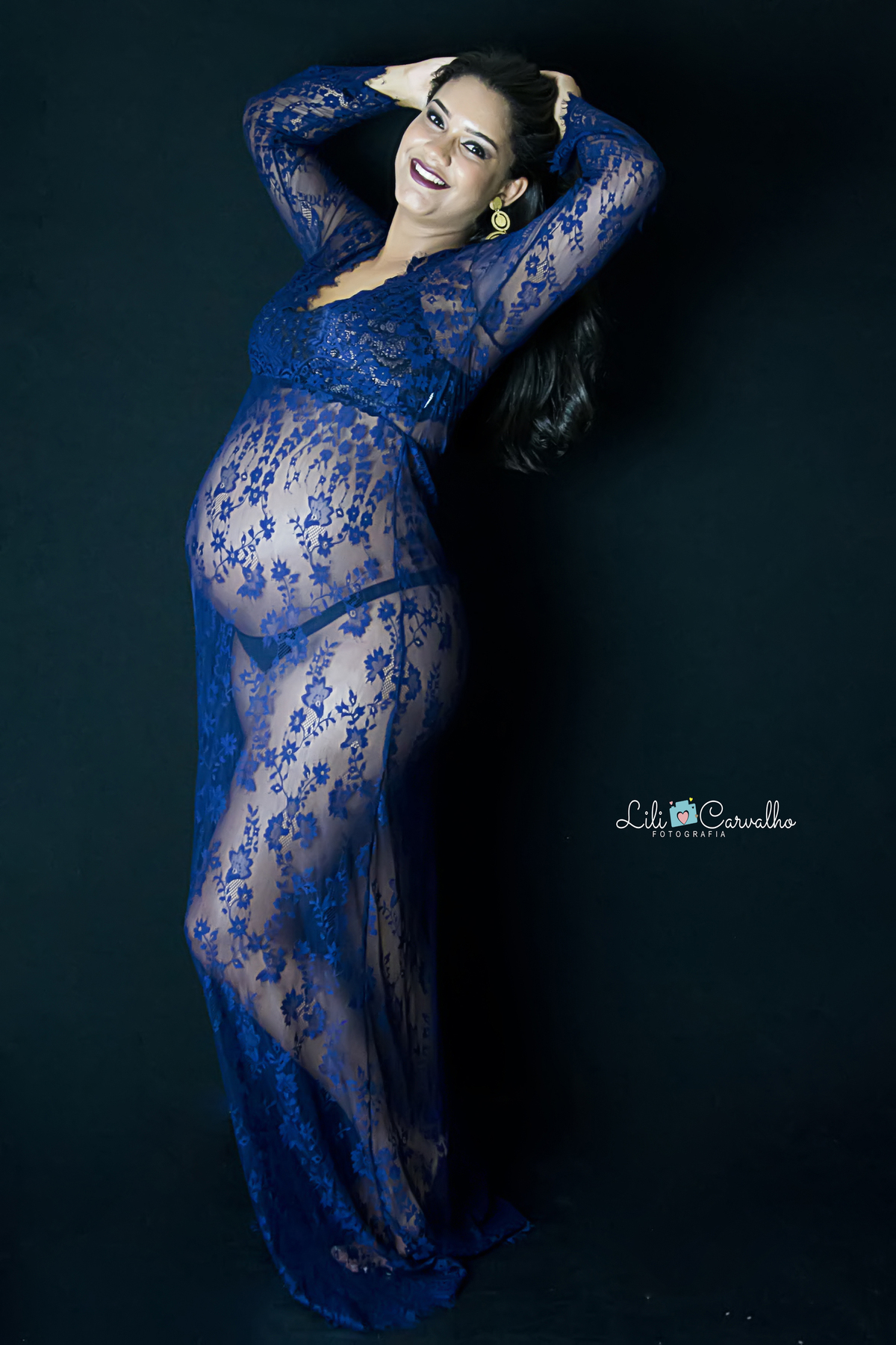 ensaio gestante no estudio em Maringá , vestido azul