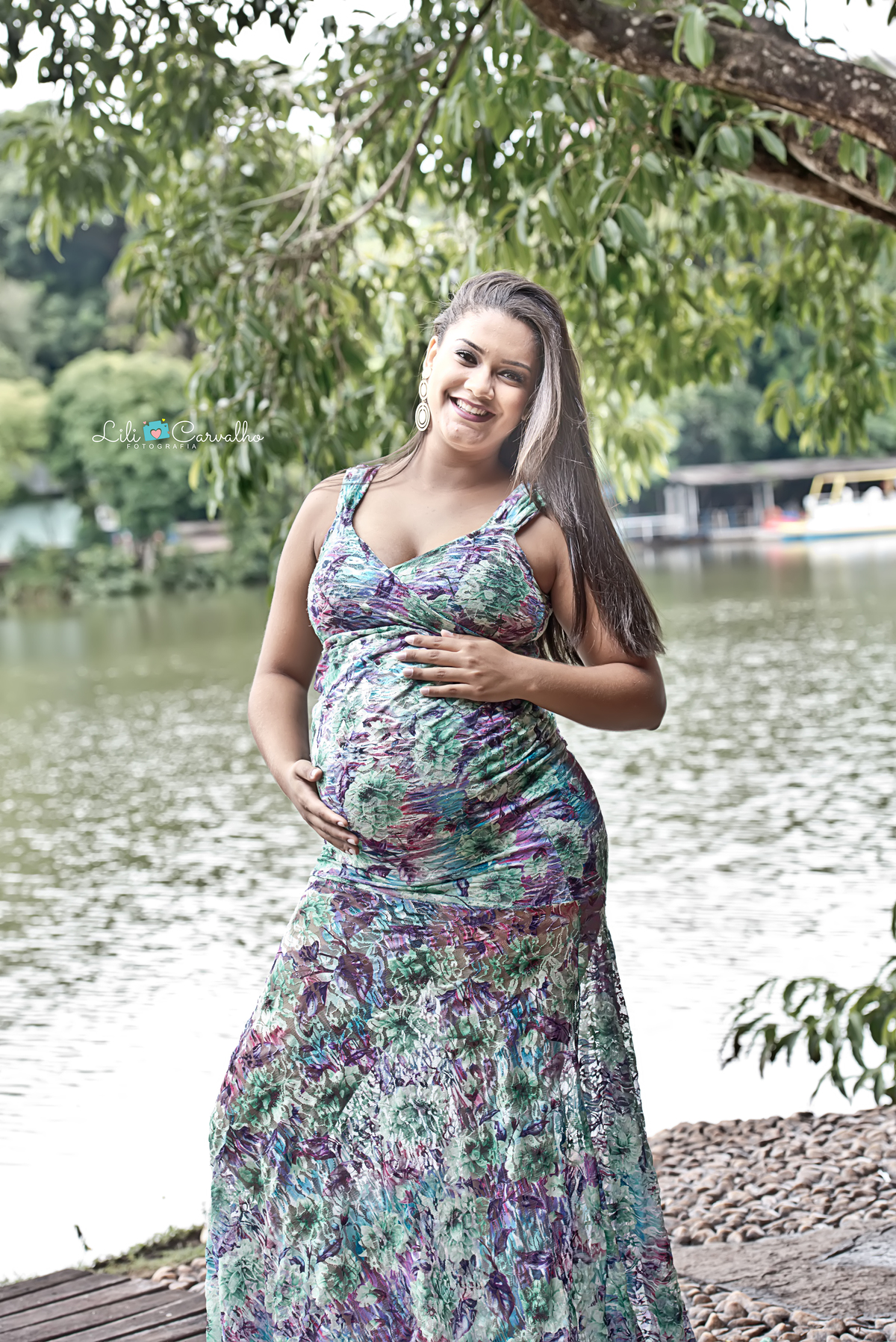 ensaio gestante em local externo em Maringá vestido azul