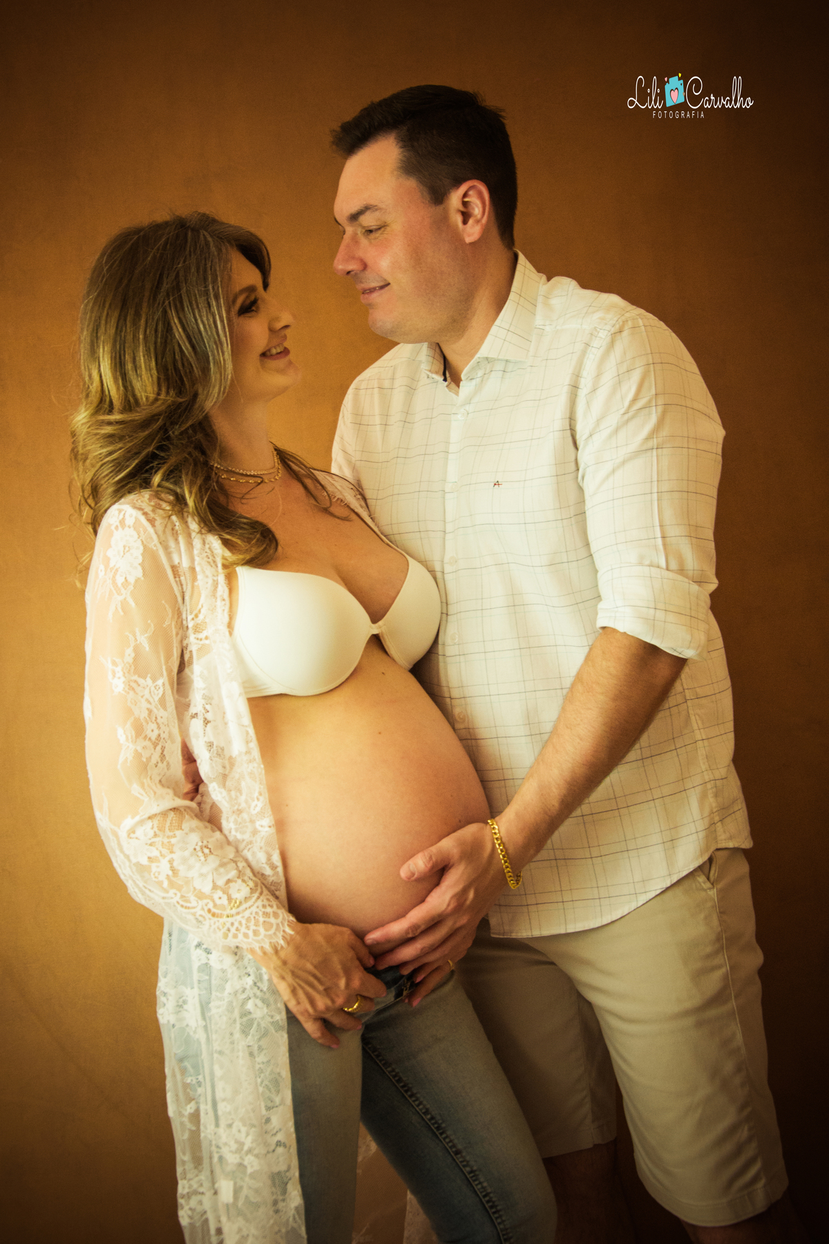 fotografia de gestante no estudio em Maringá casal