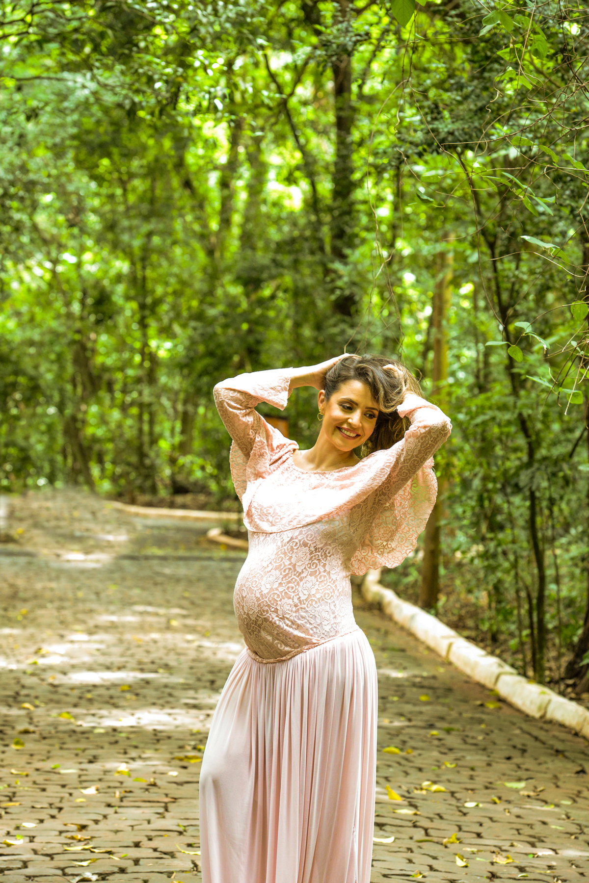 ensaio fotografico de gestante em Maringá, mão na cabeça