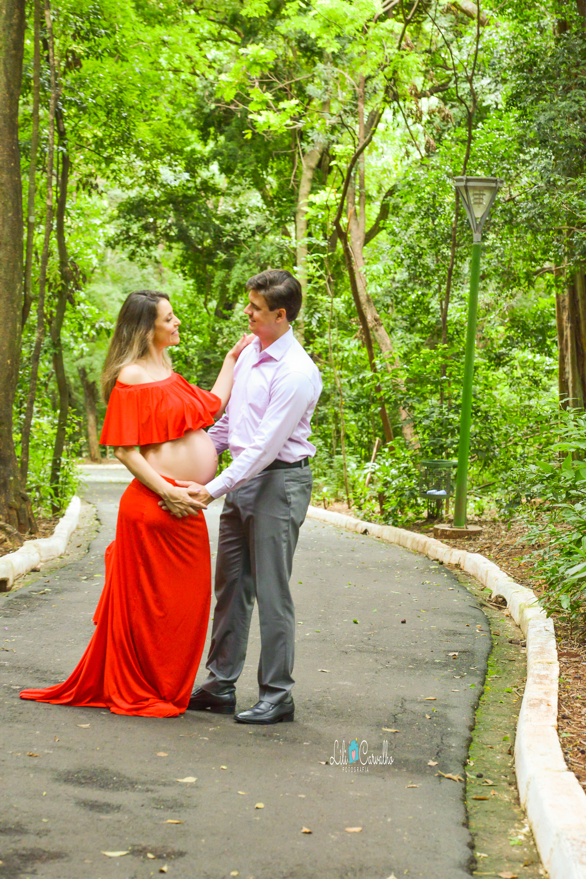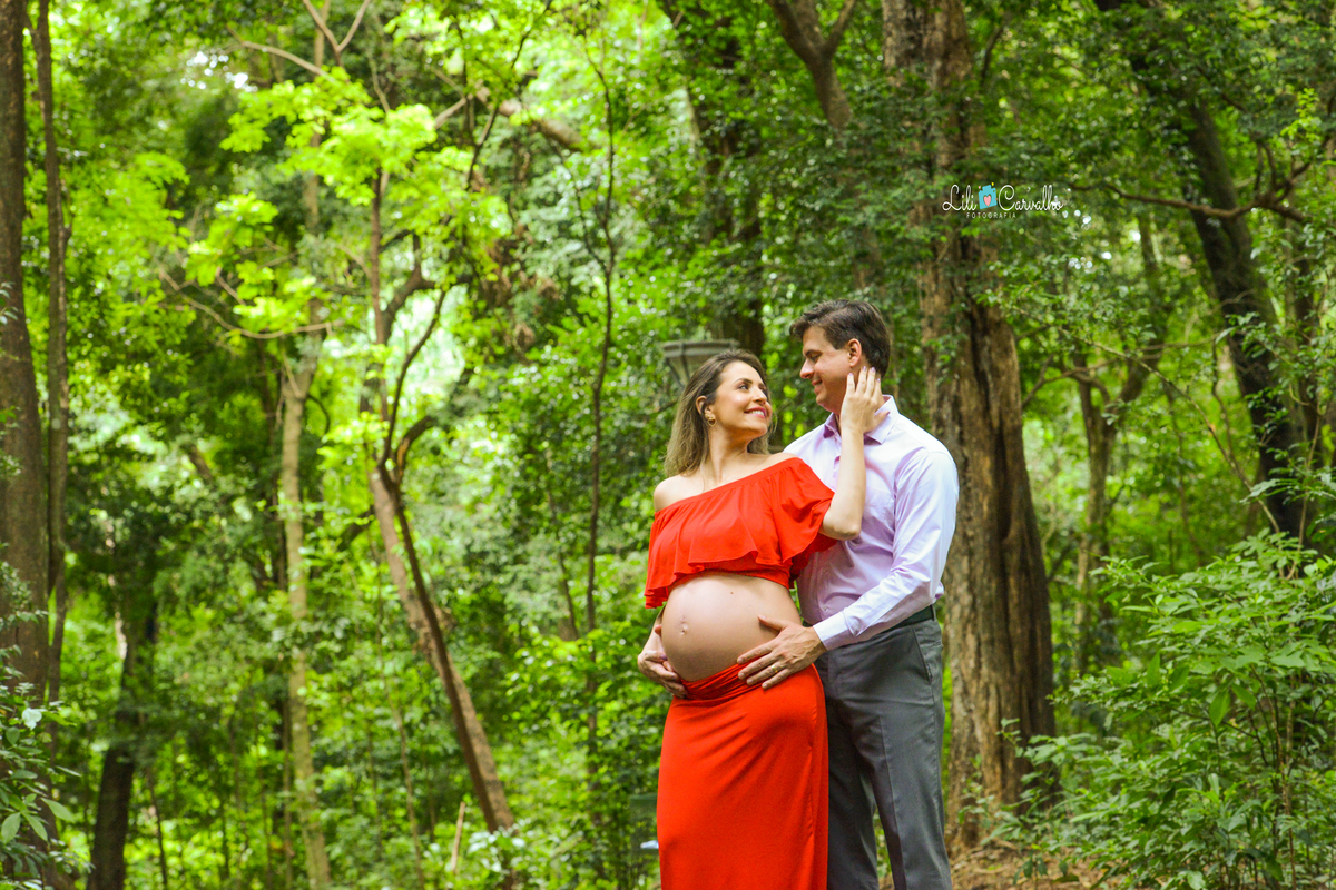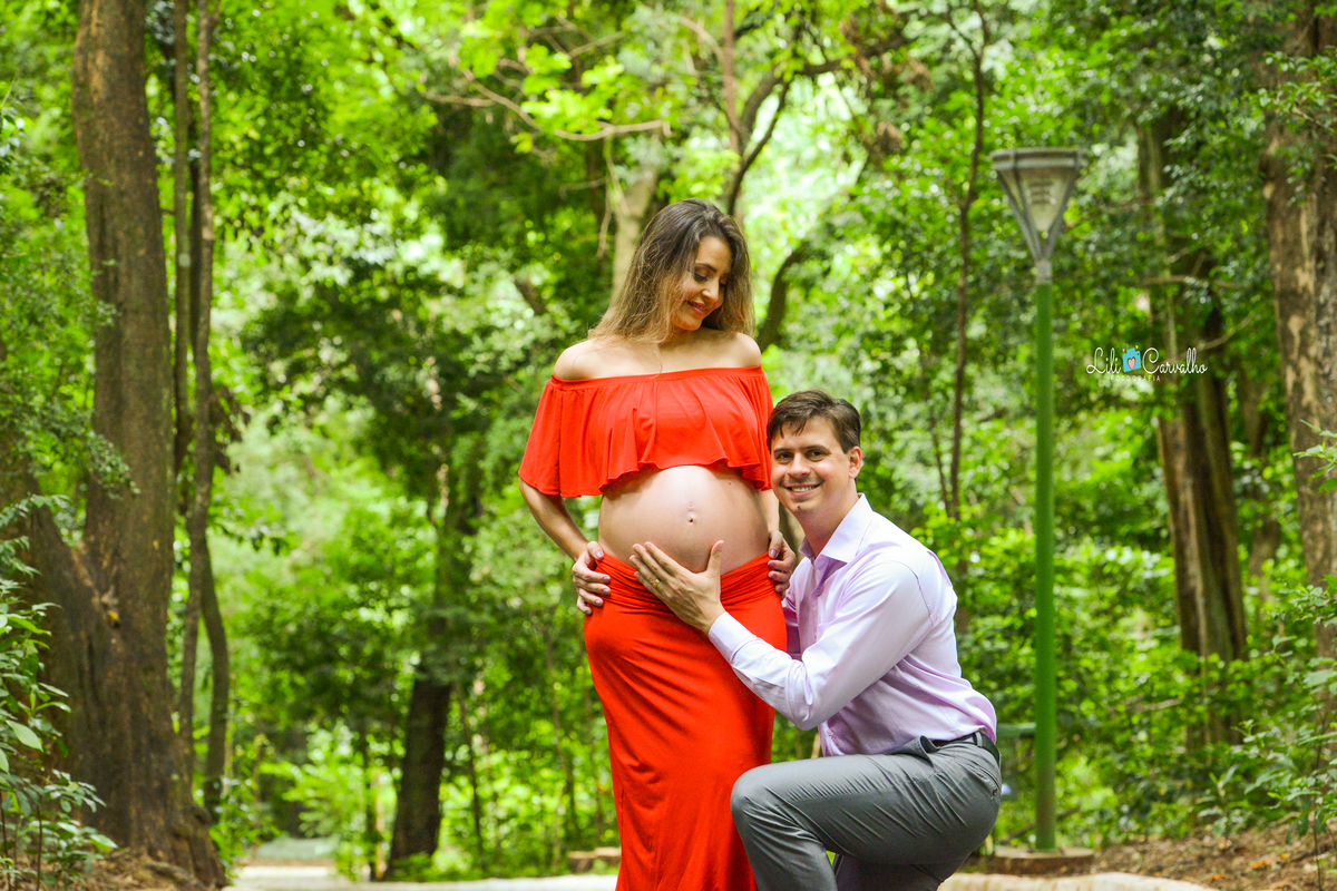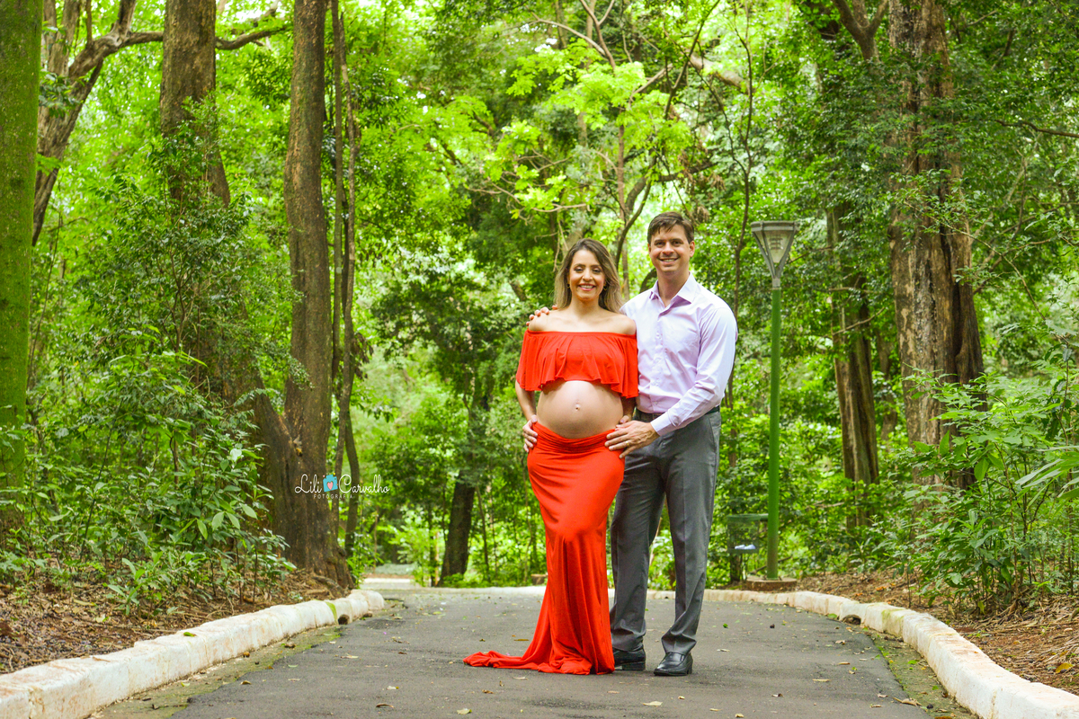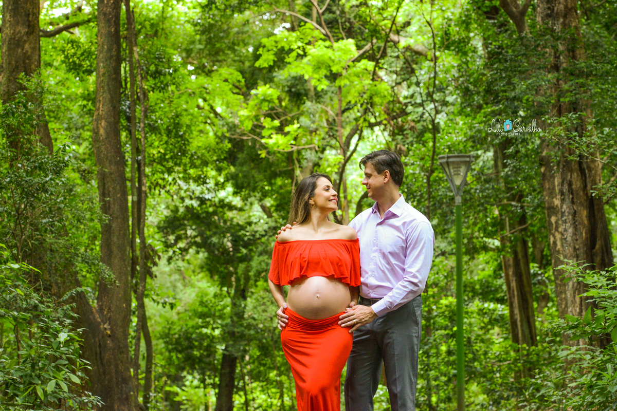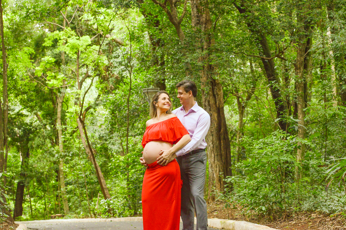 ensaio fotografico de gestante em Maringá, clima de romance vestido vermelho