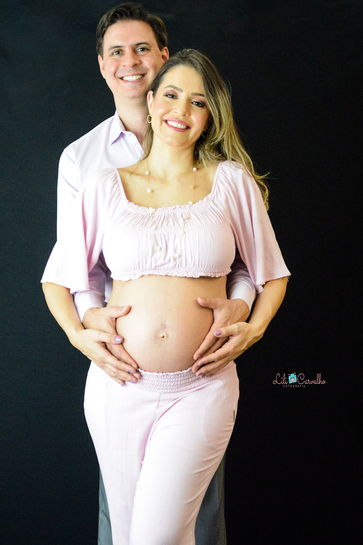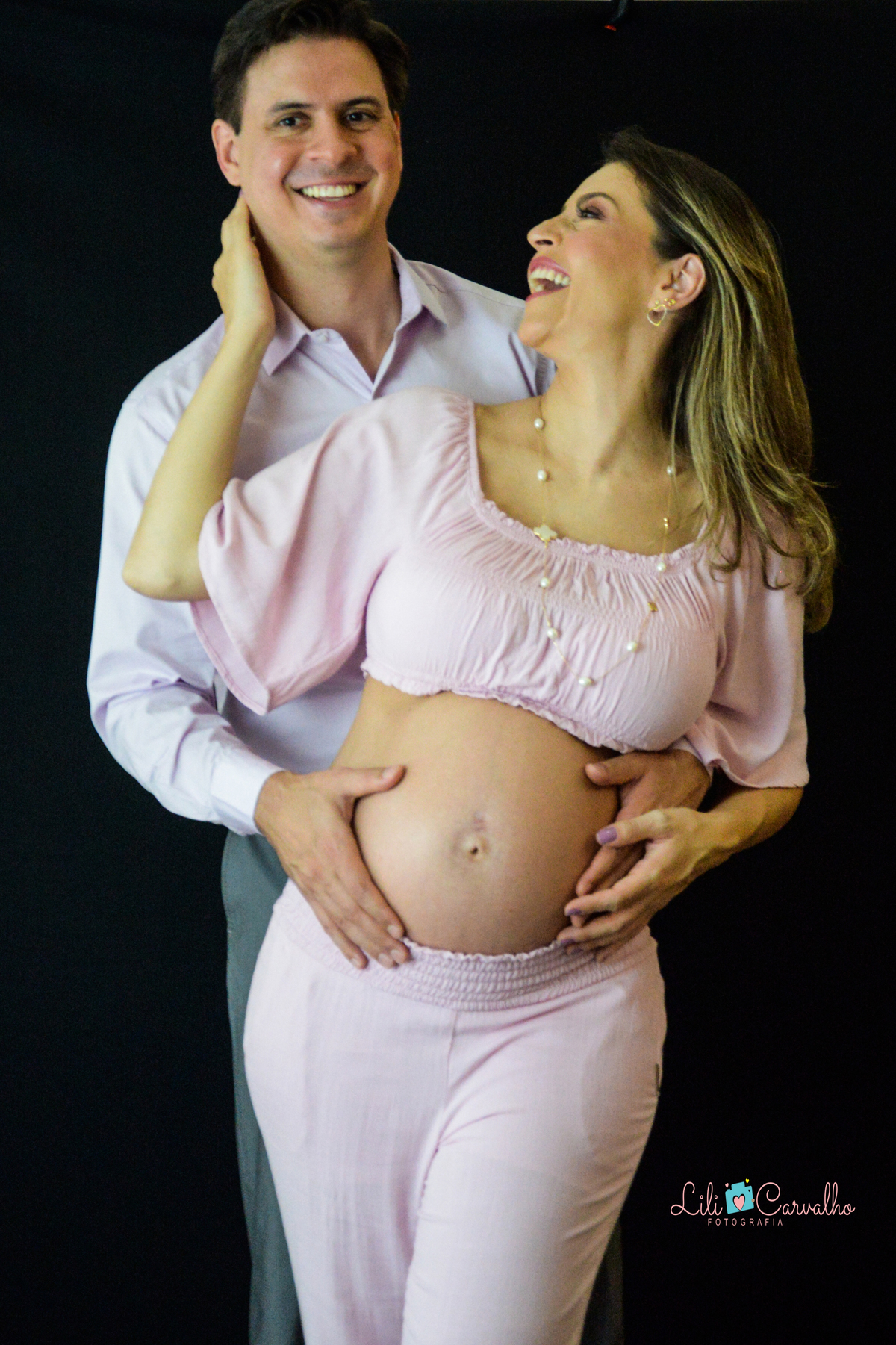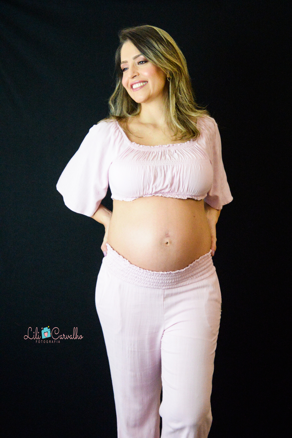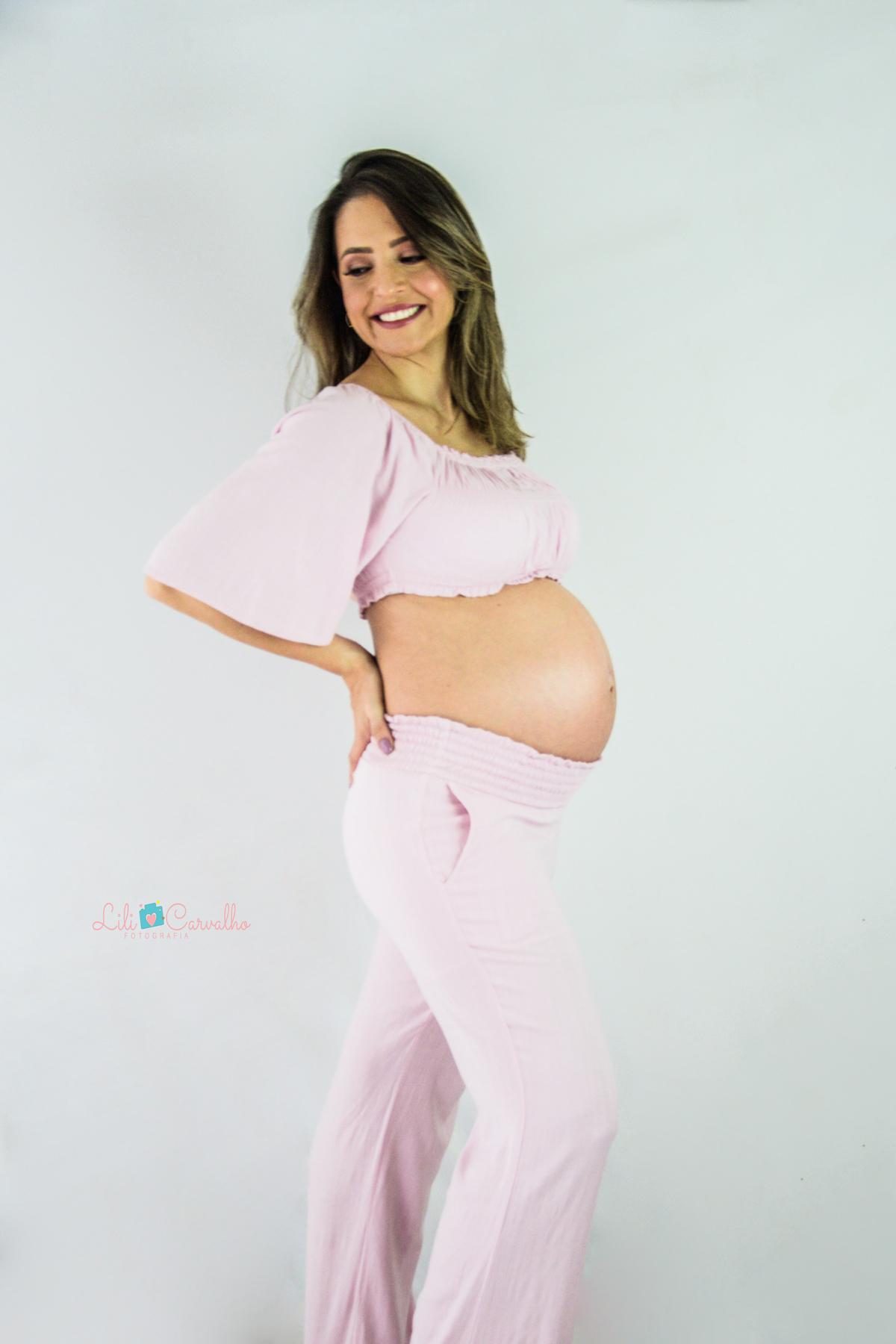 ensaio fotografico de gestante em Maringá, conjunto rosa, lateral