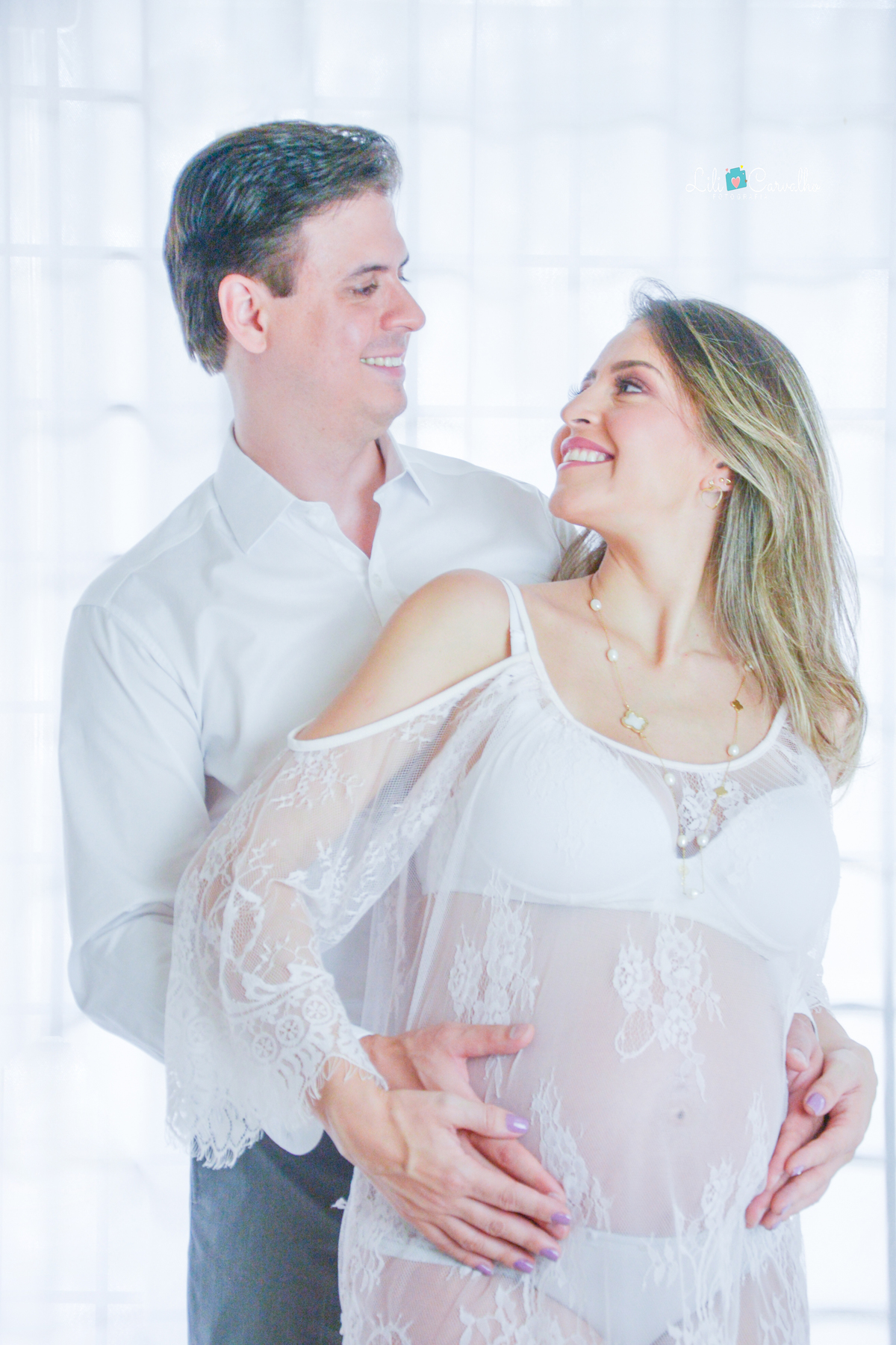 ensaio fotografico de gestante em Maringá, lingerie branca