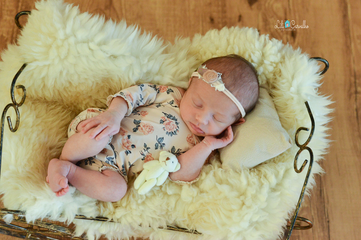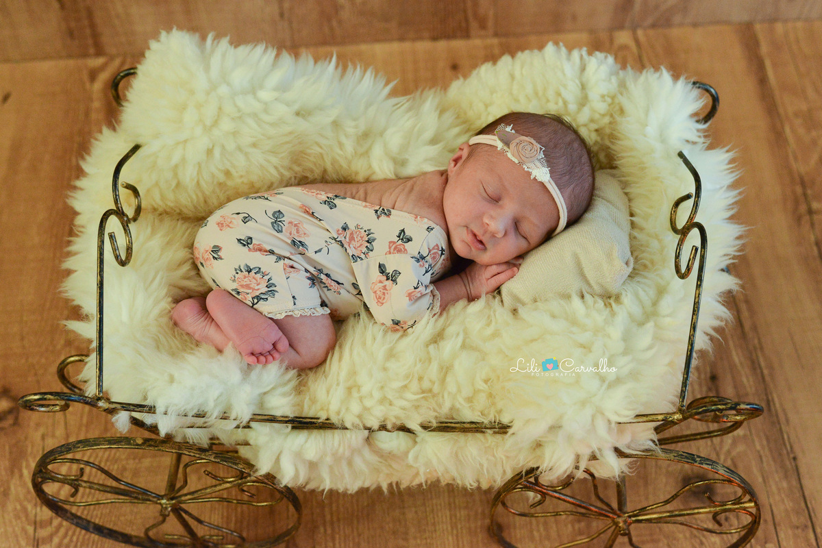 fotografia de newborn da Elisa, feita em estudio Lili Carvalho em Maringá carruagem
