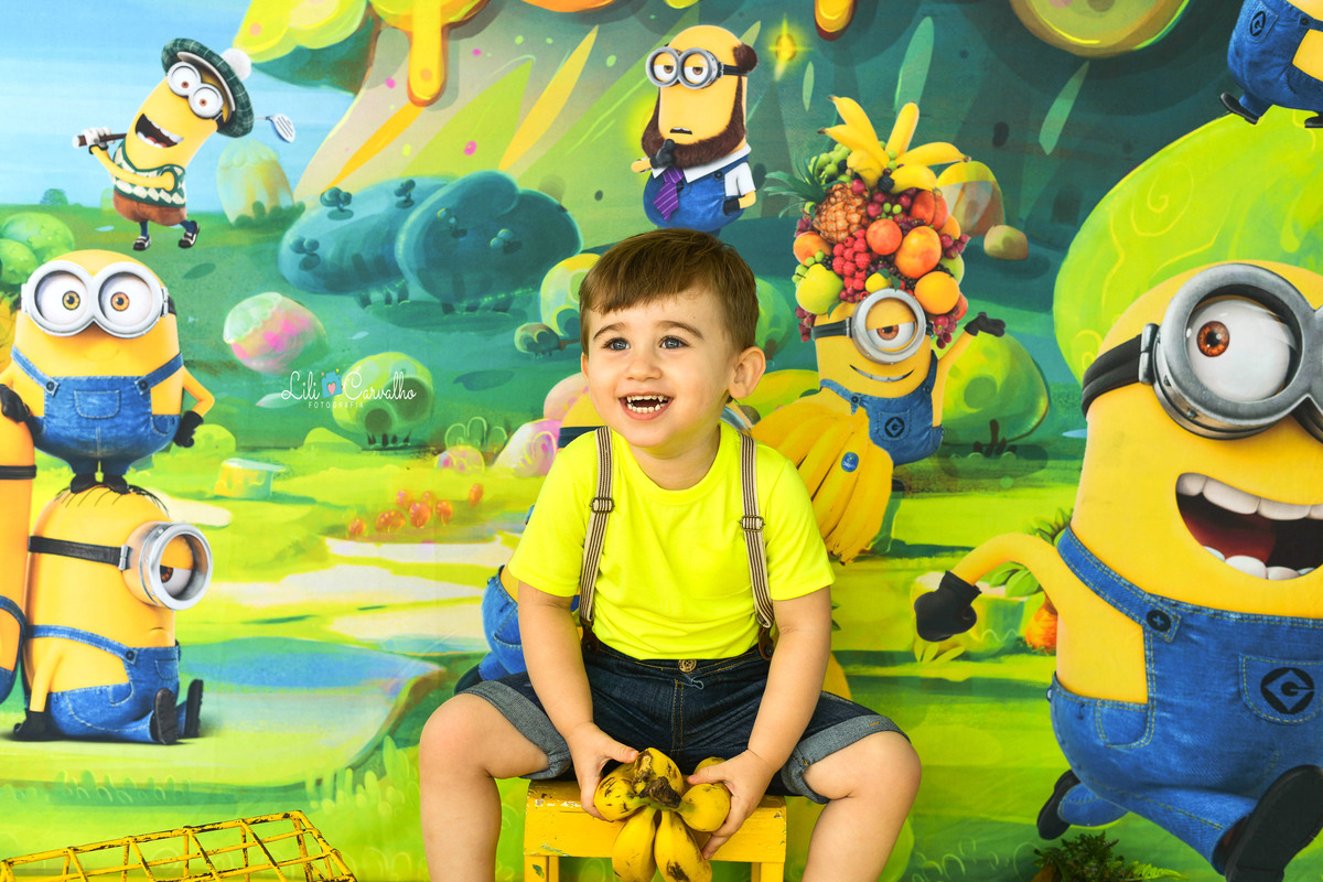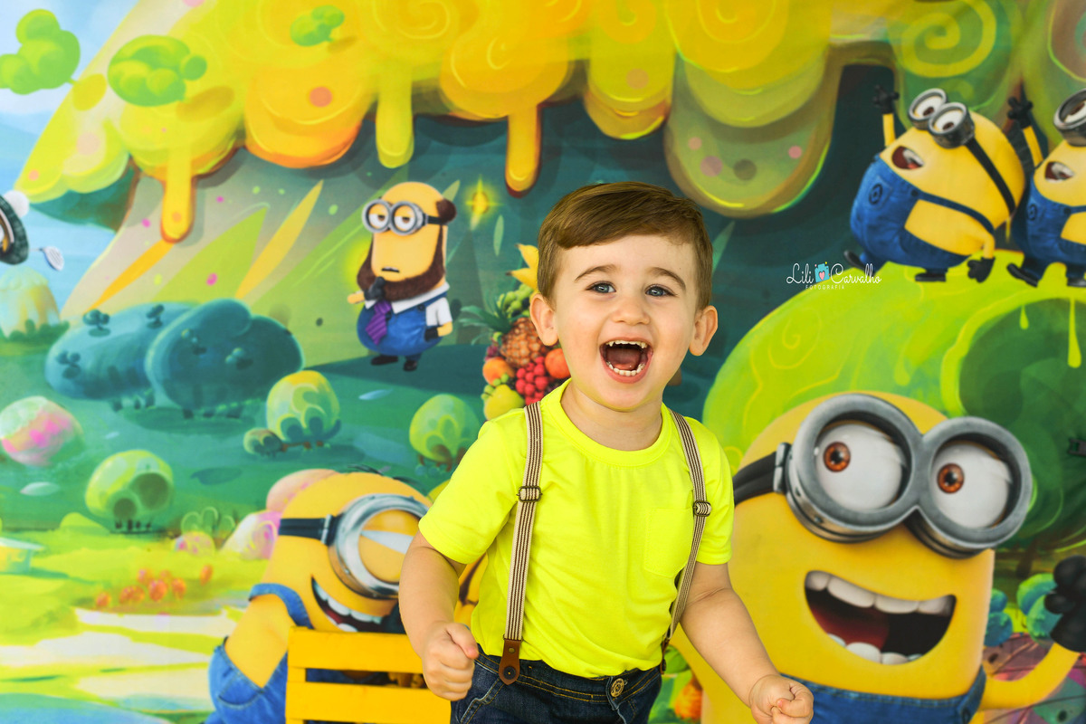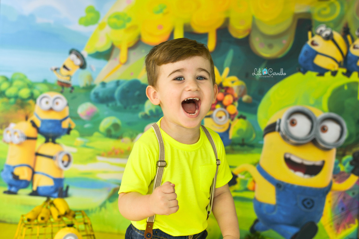 foto de menino, aniversario, tema minnions, maringa estudio sorrindo de novo