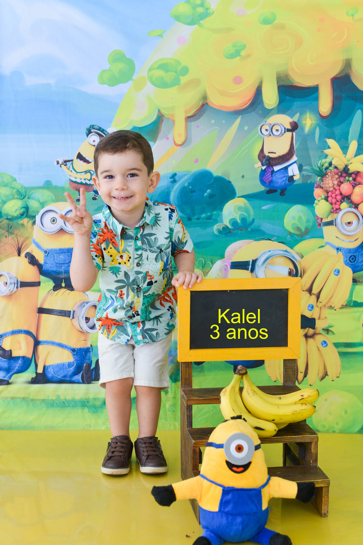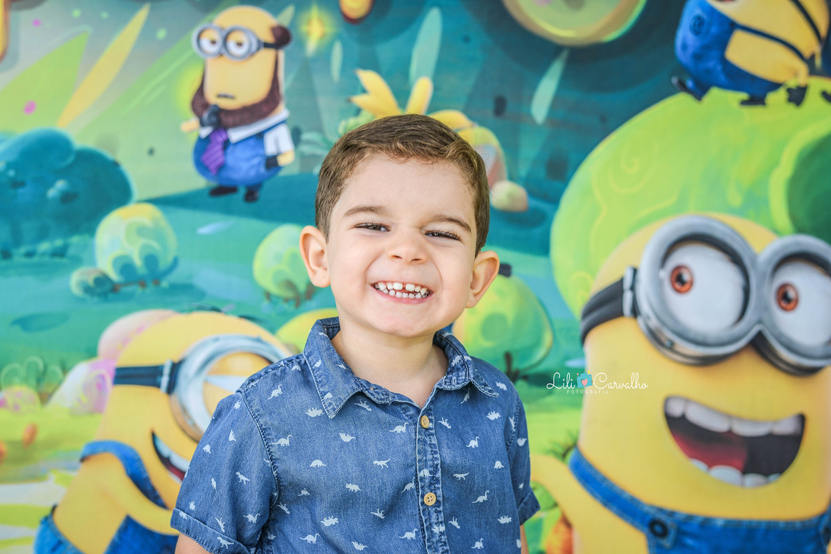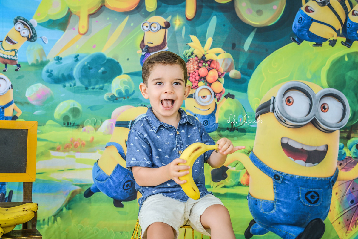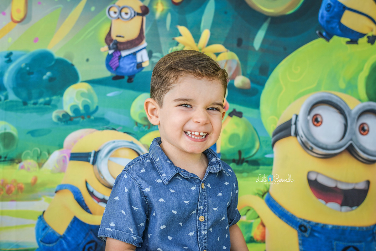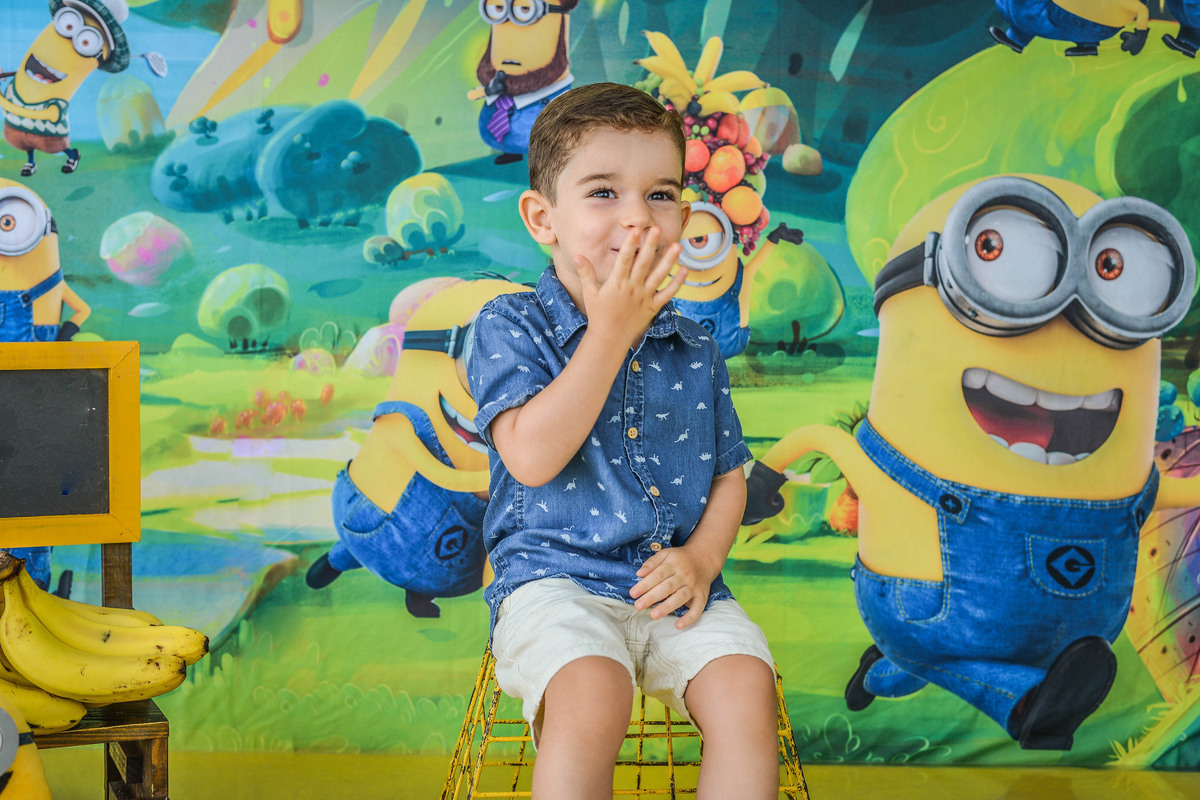 Kalel voltou para fotografarmos seus três anos de vida. A fotografia foi feita no estúdio em Maringá, no tema minnions.