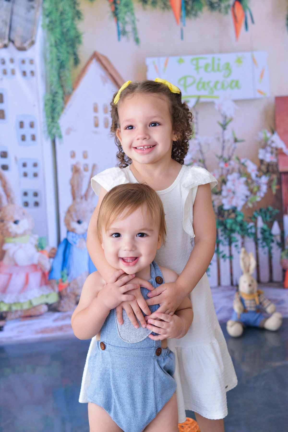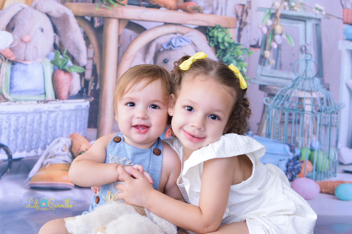 ensaio fotografico realizado em Maringá do tema de pascoa com irmã